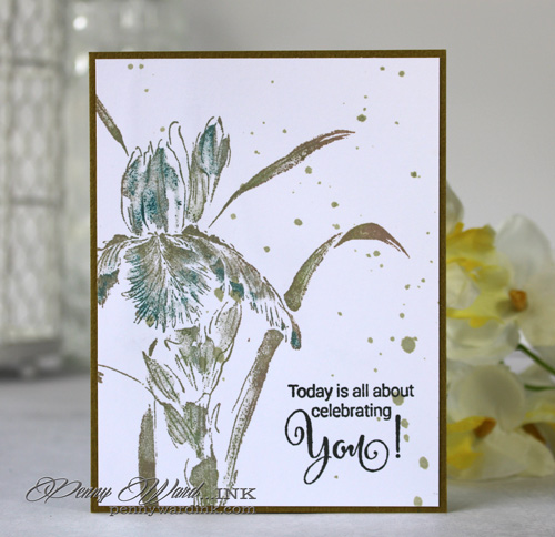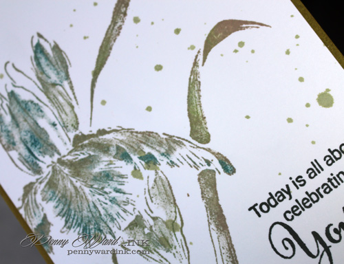 To give it a somewhat watercolor look, I flicked ink across the card front.