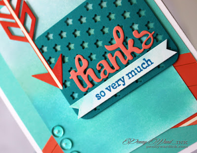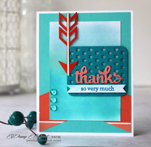 Though you can't tell in the picture, the bottom orange layer (in real life it is Coral) and the arrow were die cut from my latest find.