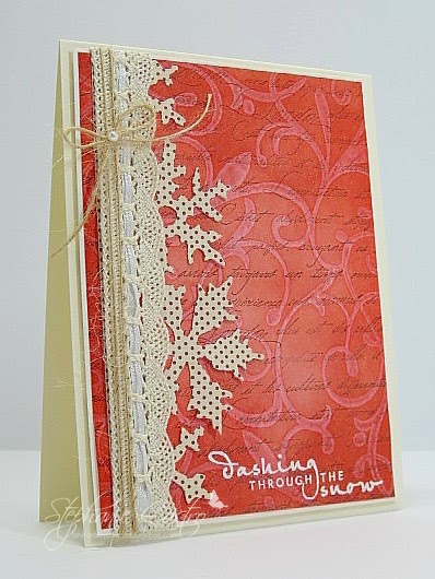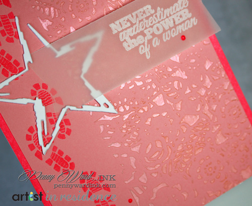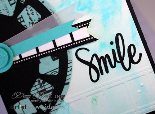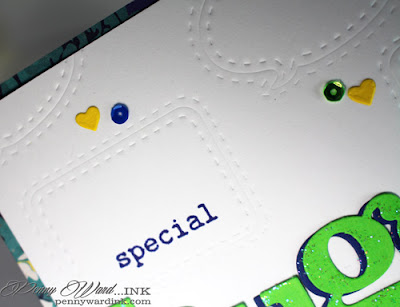 Using a speech bubble die from Lil Inkers, I embossed it all over my card instead of stamping as Shay has done on her card above.