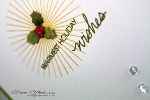 Starburst behind holly leaves is stamped with Delicata Golden Glitz (the BEST metallic gold ink EVER!)