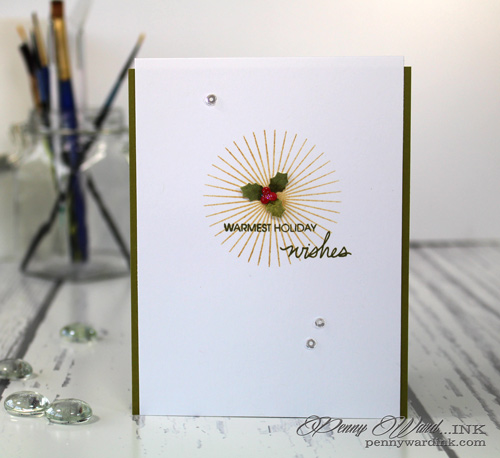 Beautiful card, Penny! Love the sunburst behind your sprigs of holly & berries! So pretty and so CAS! Thanks for playing along with us this week over at Merry Monday!