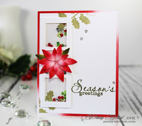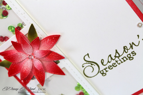 The gorgeous poinsettia was die cut and eBrushed with Copic markers.