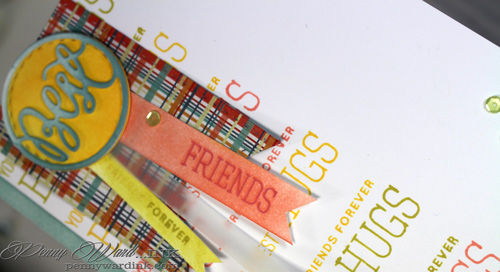 A couple of the sentiments from the Best Hugs stamp set were repeated down the side of the card using the new Hybrid ink set Sunny Days.