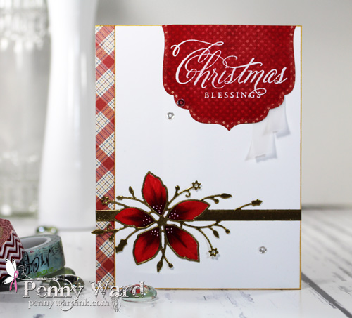 Beautiful Christmas card Penny. Love the sweet poinsettia. The touch of gold is so elegant. Thank you for playing along with us at the Curtain Call Inspiration Challenge.