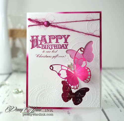 The bottom butterfly is heat foiled also with the young ladies name.
