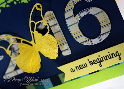 You've really added a WOW factor to your card with the butterfly replacing the "0". What a fabulous look with the plaid numbers with navy, and I LOVE that corner die with the alternating color at the top. Congrats on your family's upcoming events - it sounds like you're embarking upon a wonderful year ahead!