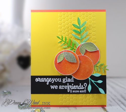 A friend requested a card with oranges on it, so I decided I could at least make something to enter into the challenge at Reverse Confetti: