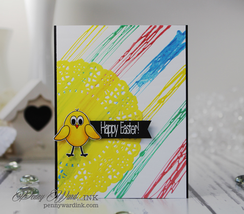 Add a large portion of a paper doily, stamp and trim your cute little chick.