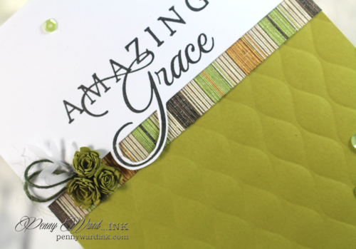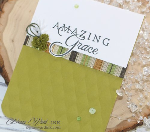 This is beautiful, Penny!! I too love the song Amazing Grace! You now have me singing it in my head...LOL! Your card is beautiful! I love the earthy colors and your layout with the quilted embossing on the bottom. Thanks for joining us at ODBD!