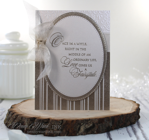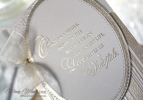 This anniversary card is absolutely stunning! That sentiment, embossed in that platinum powder, is just gorgeous. Your son and daughter-in-law are sure to cherish this for a long, long time.