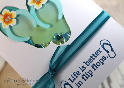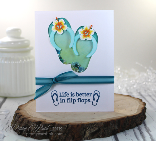 Today I am showing off a shaker card cut in a Flip Flop shape.