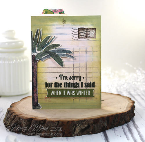 The card front, Palm tree, stamps and tab at top are from a digital scrapbooking set I found on the big World Wide Web.