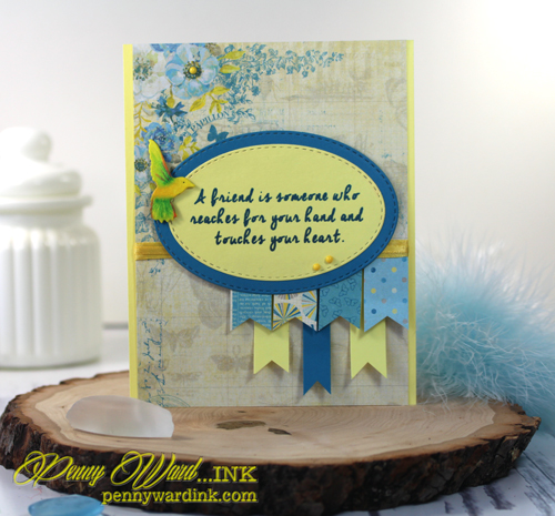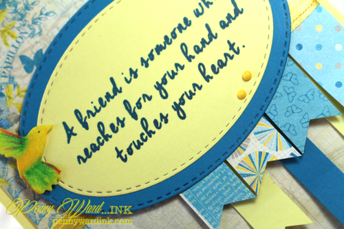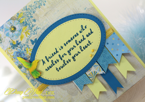 Sentiment was stamped, then die cut with Stitched Ovals.