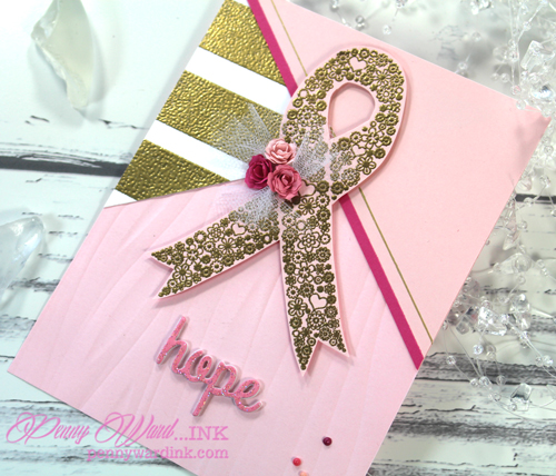 Gorgeous card Penny! I love the gold embossing on the hope ribbon!