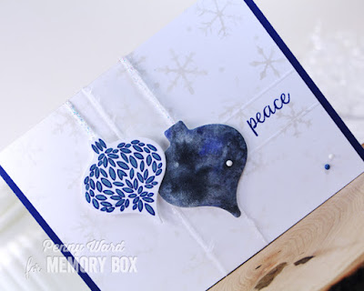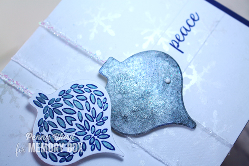 That shimmery background of snowflakes... it's a stencil with Delicata White Shimmer ink.