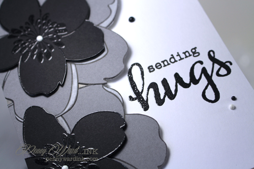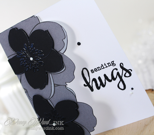 Flower was stamped again on Gray card stock and Black, fussy cut and adhered to card front.