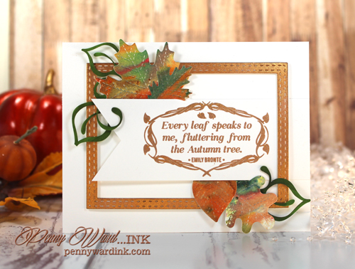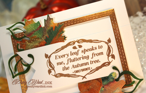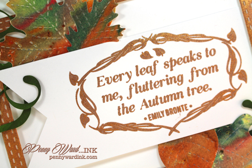 Autumn leaves are die cuts from watercolor paper. They were sprinkled and spritzed with Lindys Magicals.