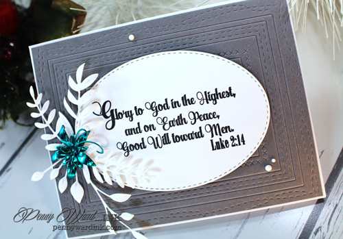 A stitched oval with the wonderful verse stamped and heat embossed.
