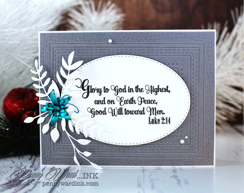Note: Metallic Teal is foil. Die cut the Poinsettia from the Ornament die.