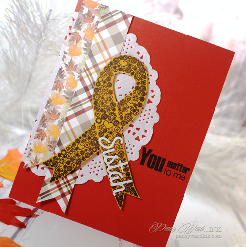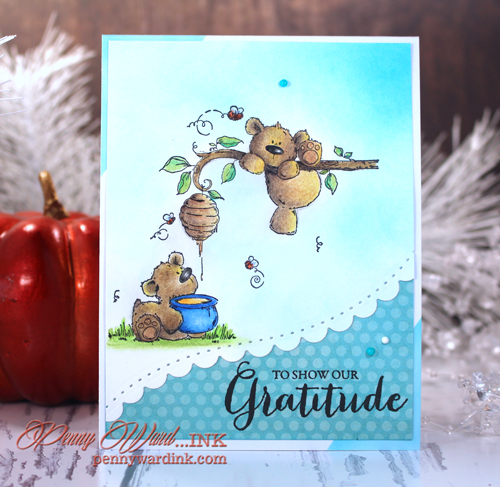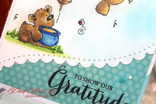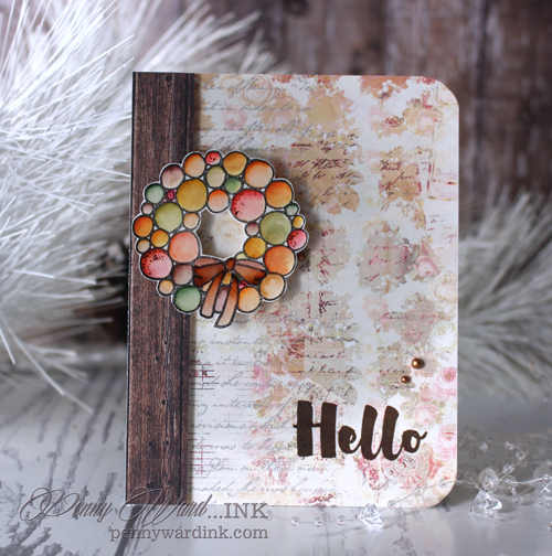 Falling Snow stencil and Whipped Spackle mixed with Snow Cone Gelatos for the top portion of the card. Die cut on a curve because you know I LOVE that!