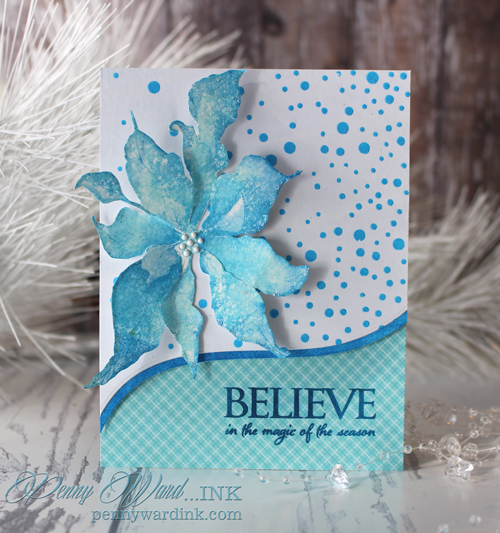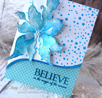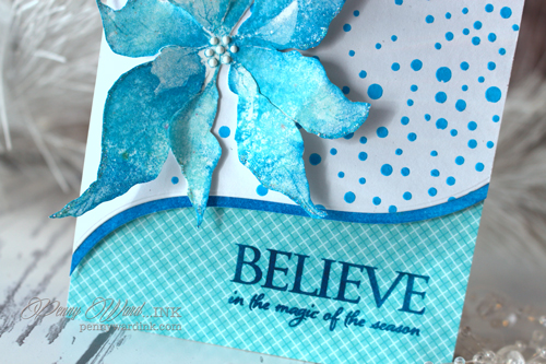 Poinsettia was stamped onto watercolor paper with Memento markers. A little Stardust Stickles on some of the leaves and Glossy White Crystal Drops for the flower center.