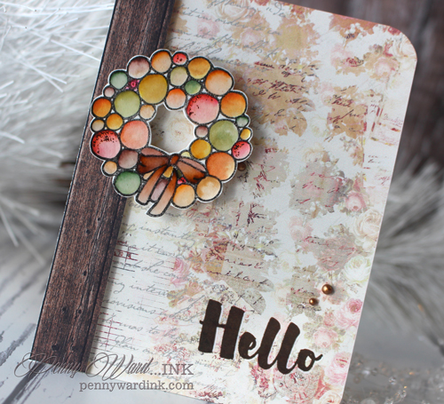 The cute wreath is from the Homespun Holiday set and can be colored for any occasion.