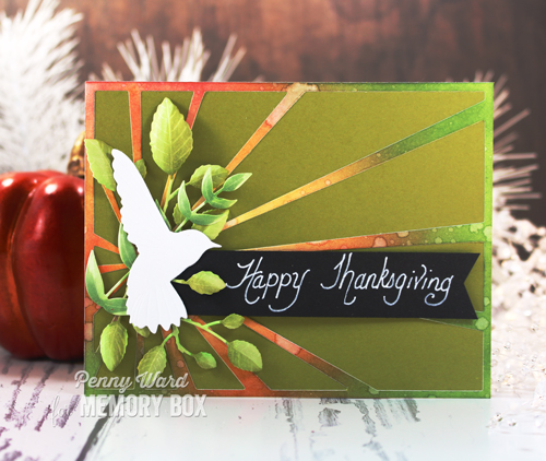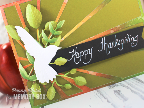 Botanical Stems and Pointed Leaf dies were inked with Copic markers, while leaving the Forest Hummingbird completely white.