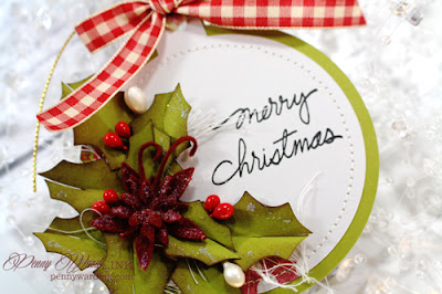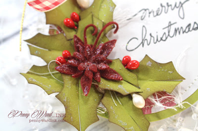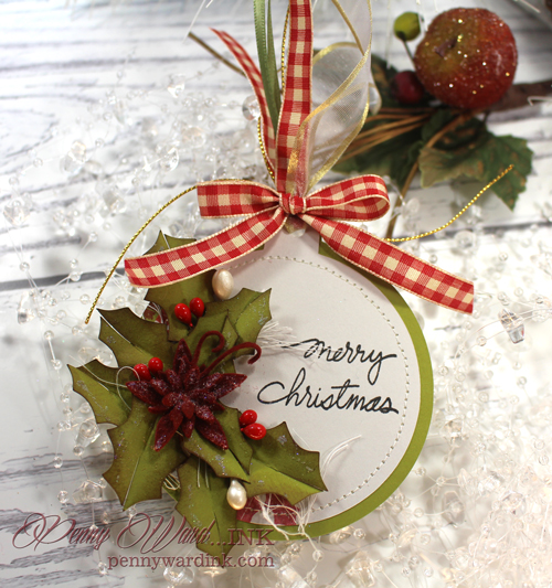 Penny, this is a stunning tag with the gorgeous holly and poinsettia. I love the checked ribbon. I would use this as an ornament too. It is perfect.