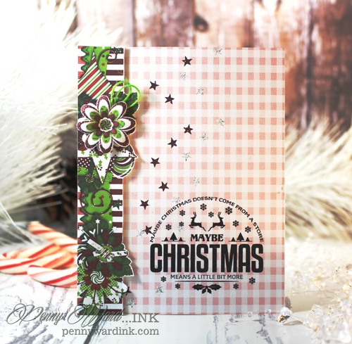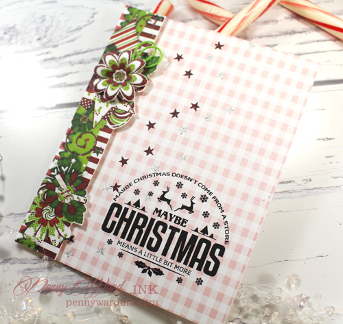 Stamped the sentiment from Maybe Christmas with black ink and the card is complete.