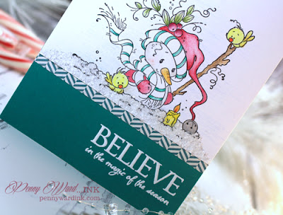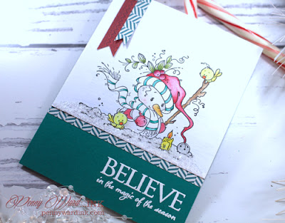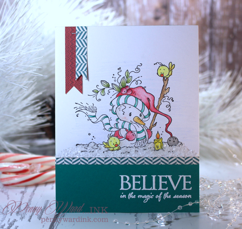 What an adorable snowman, Penny! I love how you've colored this image and finished off your card and added snow. Just precious! Hugs :-)