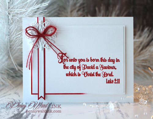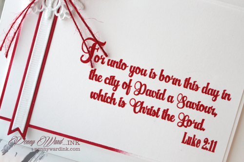On my card it is a matter of stamping the sentiment with red ink and heat setting with clear embossing powder.