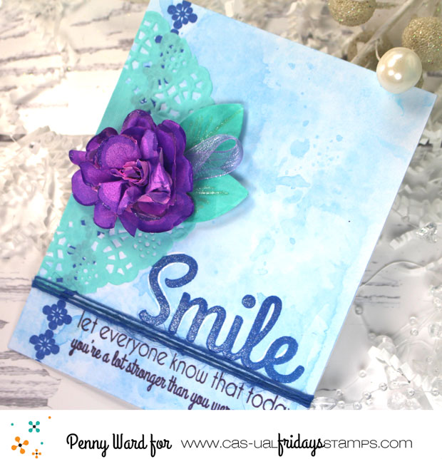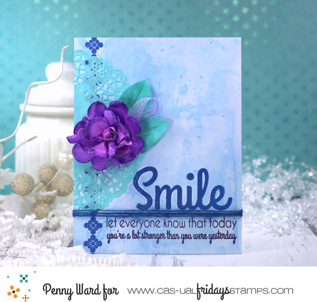 Beautiful card, Penny! I love the collage look with your doily and flower. The background is lovely too. Thank you for being a part of the Calling All Sistahs Encouragement Squad.