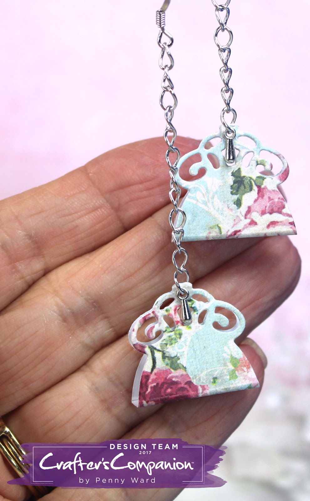 Just a matter of die cutting some pretty pattern paper like the Rustic Cottage Collection, a couple of folds, add your earrings and you are done.