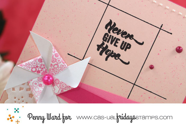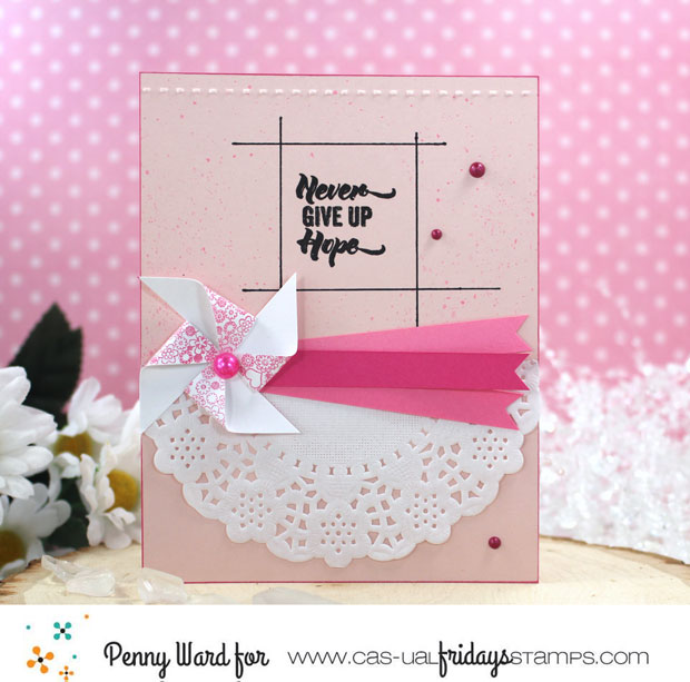 (The adorable pinwheel is the ribbon from Hope Ribbon set, stamped several times then trimmed)