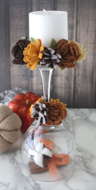 Added a handmade Felt candle ring, a few cinnamon sticks and you have something adorable for your table.