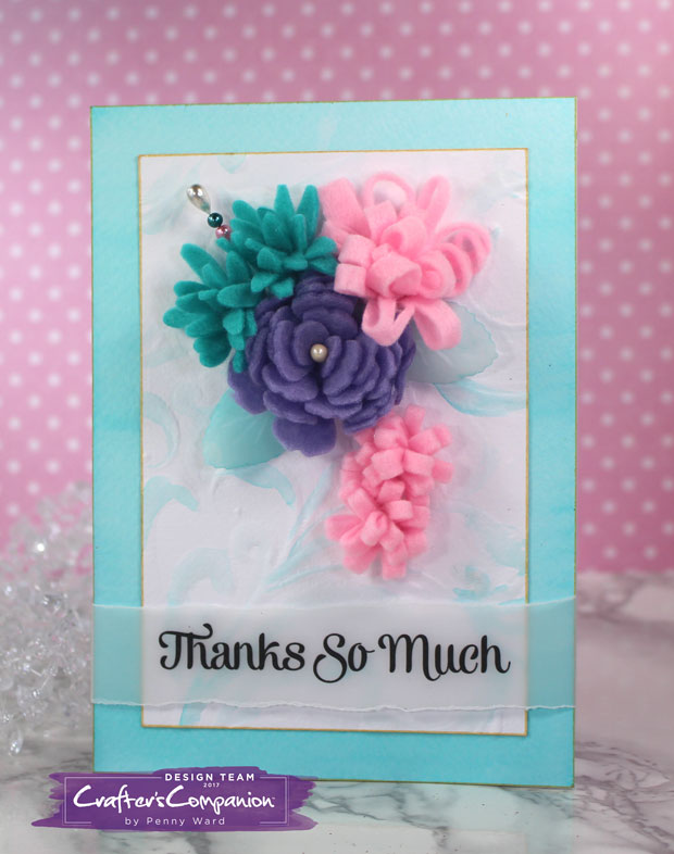 At last.... a pretty card with loads of texture using the new flower dies and Felt by Crafter's Companion.