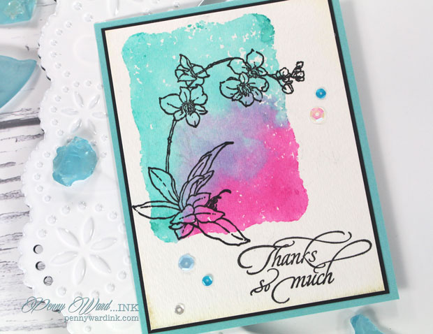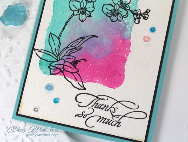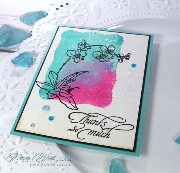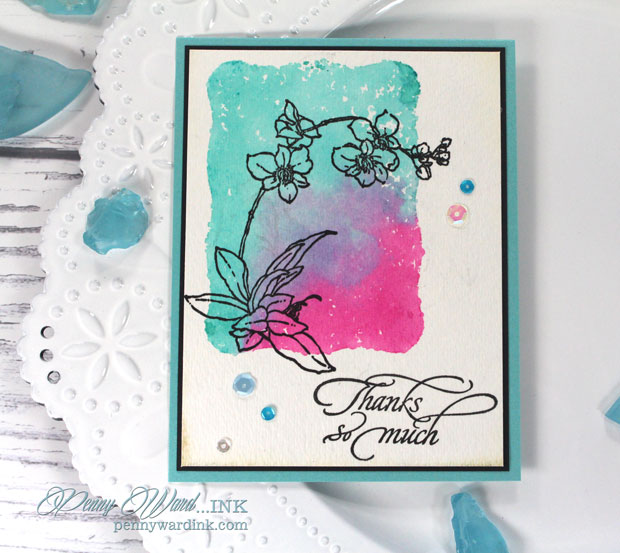Using watercolor markers, scribble on an acrylic block, mist with water and press onto watercolor paper.