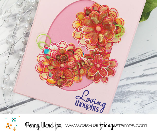 Wow those powders are certainly magical as they add such a sparkle to your gorgeous diecut flowers! Thanks for the inspiration Penny. Hugs, Gwebdolyn