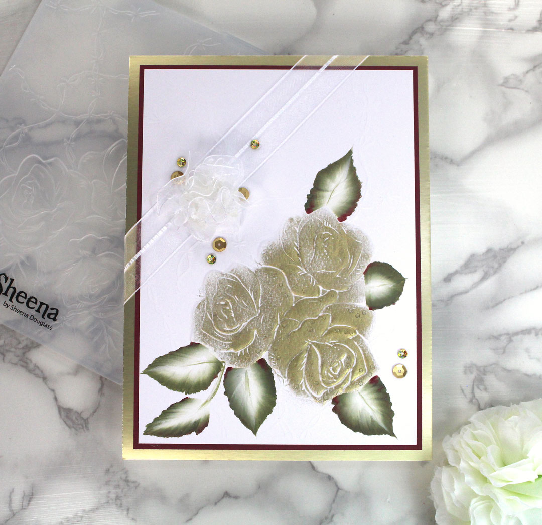 Or this Sheena Douglass 3D Tangled Rose folder with Gold Gilding Wax and a bit of Fusion paints for the leaves.