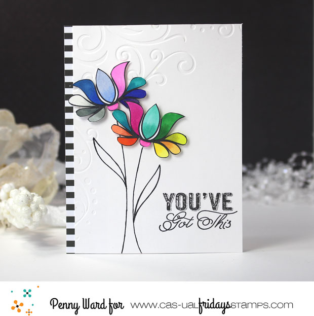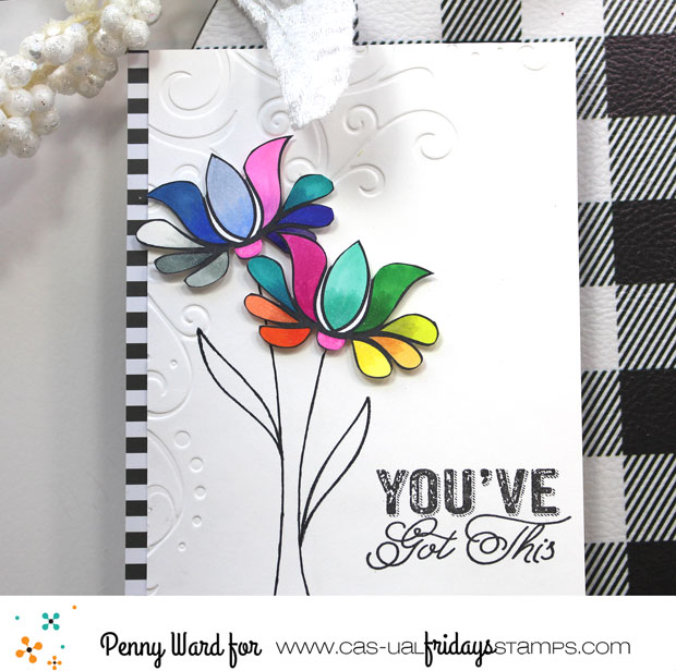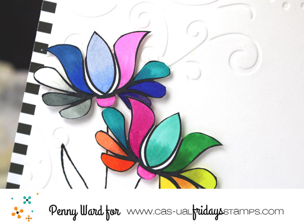 I stamped the flowers from the Mon Ami set a couple of times, then colored with Spectrum Noir markers and fussy cut.