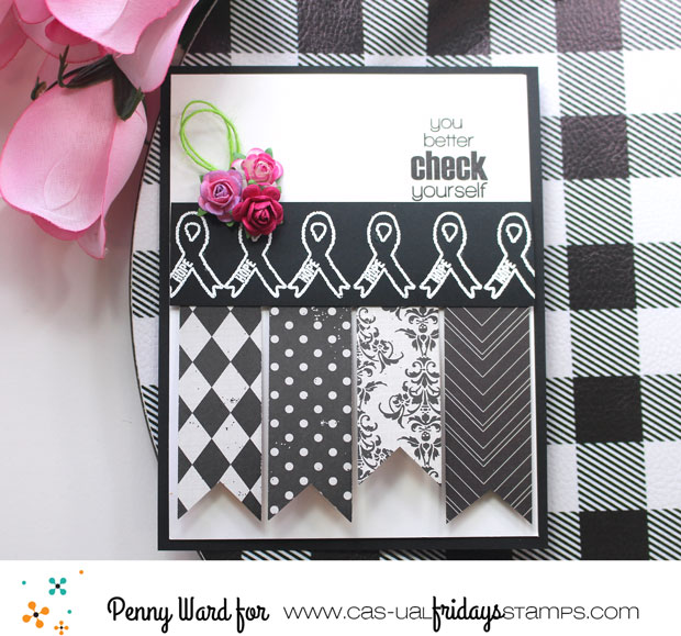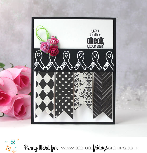 I absolutely love everything about this card! The banners, the ribbons and the sweet little flowers. A beautiful reminder to check ourselves!