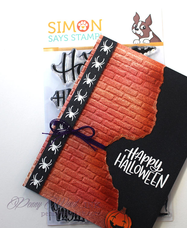 I love the font! It pops against the black! And the texture in the orange brick, such a fun card!