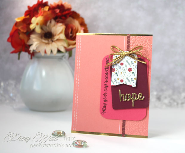 Die cut Tag Buddies, stamped the sentiment using Peace, Love & Coffee, then layered the tags with a die cut Hope from Mirrored cardstock.