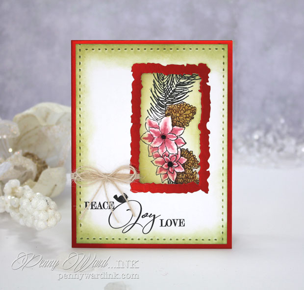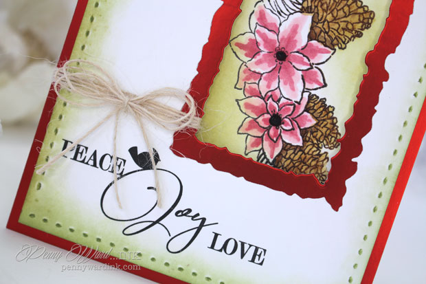 Using a portion of the Joy of Peace cling stamp in the window, then colored with Spectrum Noir markers.