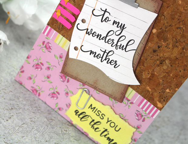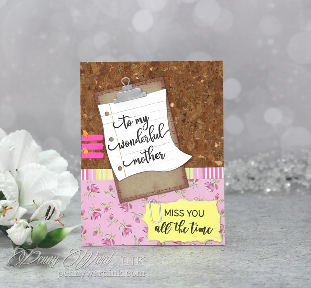 Using real cork cardstock, some pretty printed paper and wonderful Just a Note die cuts from Penny Black on this card that will never see its recipient.